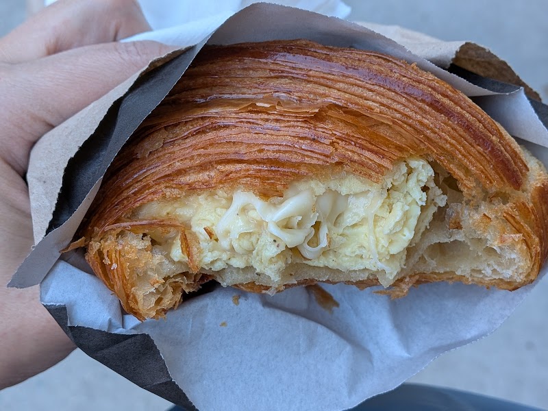 "Overall, I like this cafe bakery and I have frequented it since it opened. I enjoy trying some new innovative pastries. I really liked their combo chocolate/hazelnut and almond croissant but they haven’t had it in a long time (on the days I’ve been there). I find their almond croissant too soggy, and their chocolate croissant unsatisfactory. Today (9/18) I tried to go buy some sandwiches around 11am and the doors were locked. No explanation. A few other potential customers also walked away disappointed."