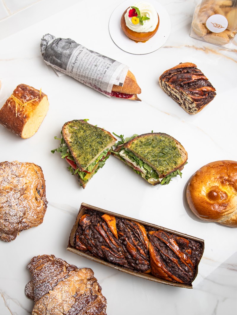 "Came here around 8 o’clock on a Monday morning. We tried the Rose macaron latte, hot, chocolate, egg croissant sandwich, tomato tart, Pistachio white chocolate babka, apple tart, and chocolate chip cookie. My favorites were the savory egg, croissant sandwich and tomato tart. The chocolate chip cookie was also really good and full of chocolate. As we were leaving, we saw the kitchen piping fresh whipped cream on top of brown croissants and they looked like they took such pride in it. Everyone was super nice the entire time. There is a super cute upstairs seating area. Definitely stop by for a pastry!"