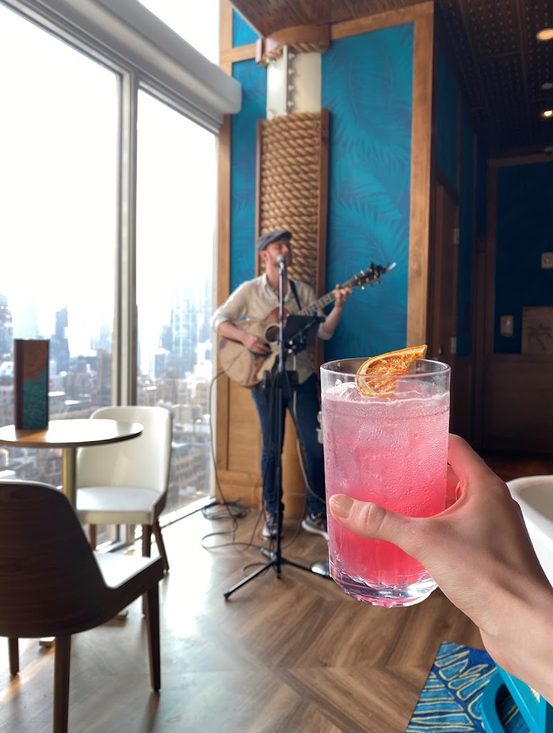 "5 o’Clock Somewhere Bar in Times Square is a stylish rooftop spot with great views of NYC, especially beautiful at sunset. It’s a fun place to hang out with friends. We didn’t try the food, but the drinks were decent. Worth a visit for the vibe and the views."