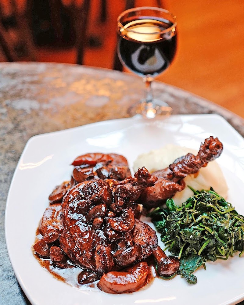 "Ordered Coq au Vin - it was dry and the sauce wasn’t seasoned well. The appetizers were good (calamari, Caesar salad). My date’s pita wrap was also good. Our waiter (girl) barely came to our table after we ordered and we waited over 20 min to be served second drinks. We after that, we had an assistant try to get her to come but didn’t. Ended up not getting a bottle of wine. I didn’t finish the food, I wasn’t hungry for it. One of the waiters (guy with longer hair) apologized, but he actually served us with the most hospitality."