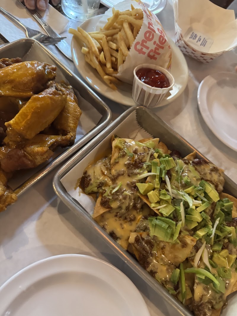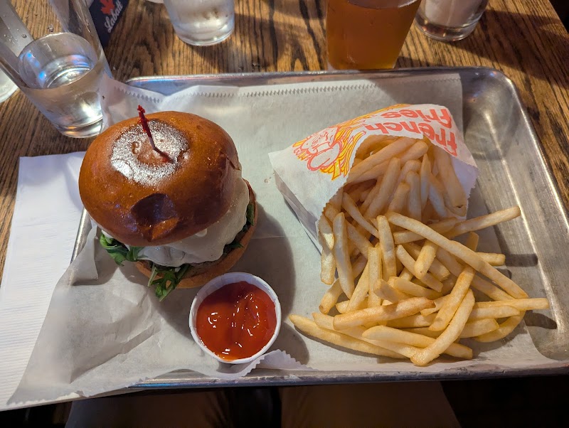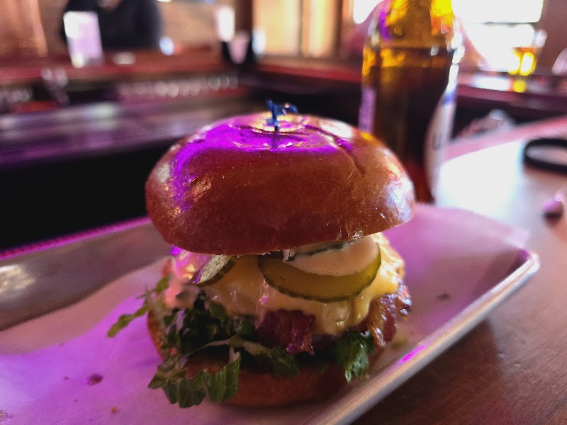 "I've been meaning to come here for its famous burgers and sandwiches, until I finally was bale to come after a long night out. The space is really cute, like an old-fashioned sports dive bar that is well kept, cleaned & put together. With tons of TV with all the sports you may be interested in. Music is not too loud & good service. The digital menu did not have all the burger choices, but the waiter provided us with the standard menu, which did have 4 or 5 options. The burgers were really good. Meat felt like needed some seasoning, but the overall bite was full in flavor. Also had the boneless chicken wings, BBQ, so yummy and crunchy. The waiter was very helpful with choosing a beer and nailed it. Def would like to come here for another hangover 🙃. And Def recommended whatever ypu live in the area or not. Cheers to the bravest."
