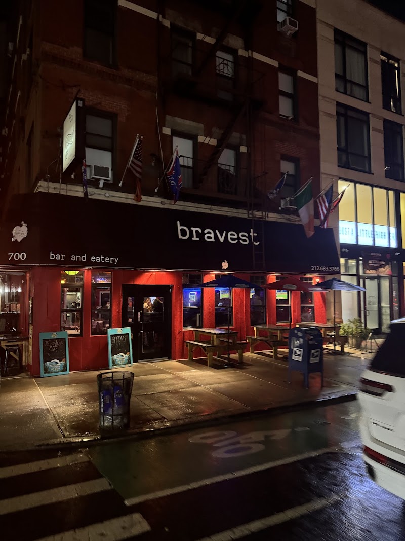 "The Bravest is a bar, and non - gastronomic pub restaurant dedicated to those that serve as NY Fire Department, and other public service jobs. It seems to have a familiar staff that knows its customers. We went on Won Ton Wednesday by chance to enjoy a $5 bowl of soup (which was actually $7 for won ton shrimp - price needs to be updated from the sign outside), and service was friendly, quick, and kind, despite our very small order. The atmosphere was nice with large TVs broadcasting sports shows. I would recommend. $$ out of $$$$$"