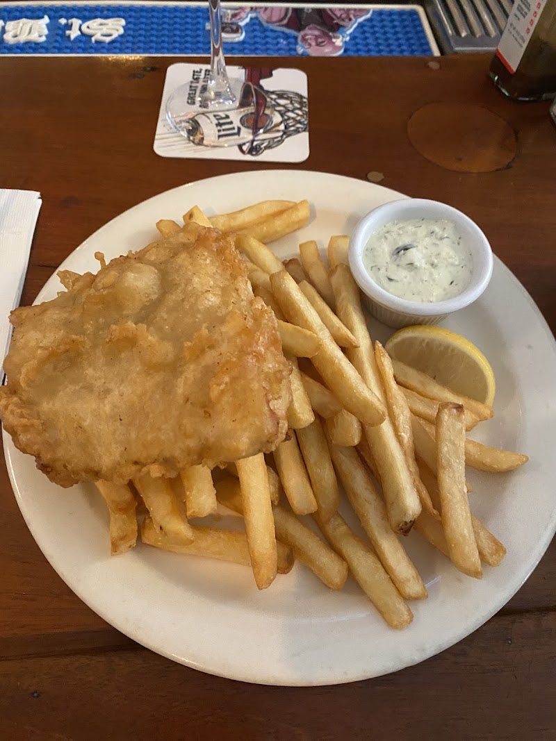 "Stopped here for lunch during Christmas and New Year’s. It was really busy but we were able to find 2 seats at the bar. There was only one member of staff working but she did a great job of serving so many people. We ordered the fish and chips, chicken club and a side of curry sauce. The food was delivered pretty quickly and everything tasted good. The curry sauce was slightly sweeter/fruitier than we are used to but it wasn’t a bad version of UK curry sauce. There were a couple of football (soccer) games on and the bar was really buzzing on a Monday afternoon. A really fun spot to watch some sport and have some good pub food. We live locally and will definitely visit again."