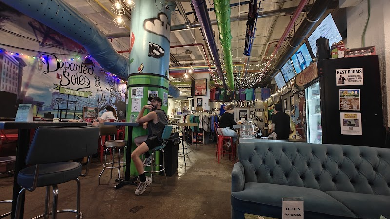 "My wife surprised me with a trip to Departed Soles on our wedding anniversary. The place is awesome! Grab a seat at one of their high tops, or some really cool custom made furniture. Tons to look at, great music playing and cards and board games if you and you friends are hanging around for a few. Staff were on point, all were very nice and professional. We had some beer… I mean, we had to try all the gluten free beers which are by far the best gluten free brews around. Had a couple flights, which come in mini skateboards and my wife tried a few of their non-gluten free beers, all were excellent. Had to buy one of their awesome shirts and a couple growlers on the way out, can wait to crack them open. Great job Departed soles. Lastly, ample parking in the parking garage across the street."