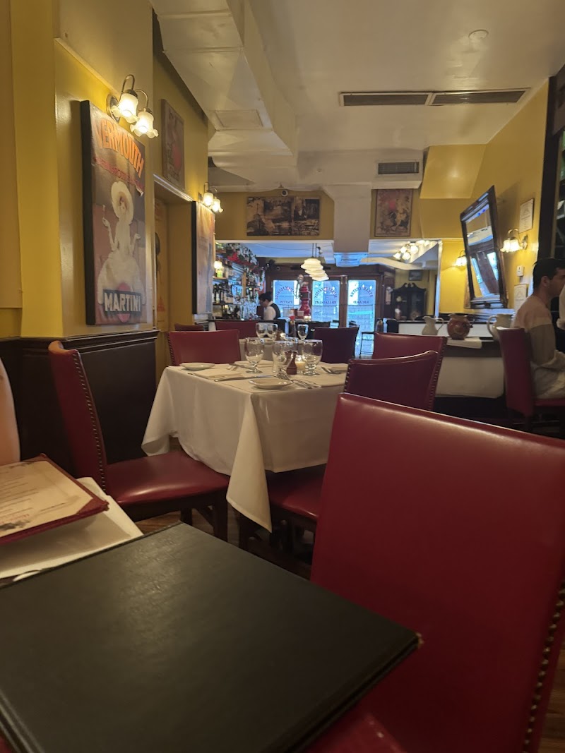 "Came here on a late weekend night as this place has been on our list for a while. It was almost full around 9pm, we got seated quickly but took a while for the server to bring the menu. We did get a corner section so felt comfy and admired the French paintings all over the wall while I waited to get served. I could tell some guests were regulars, felt like a perfect restaurant to experience delicious French food at a relaxing cozy French place. The grilled calamari was excellent and they kindly divided the dish into two plates. We ordered the burger and the roasted duck which was absolutely amazing. The staff made sure the sides (mashed potato and string beans) for the duck were portioned well and it didn’t disappoint. Not just the portion but the price points and quality was great. We topped it off with the raspberry Neapolitan and it was to die for. Light and not too sweet we couldn’t stopped scooping the sauce on the plate!"