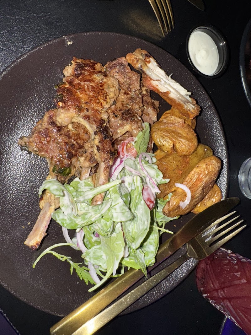 "It wasn’t my vibe but it was cool. If u are into loud music, hookah, and females twerking at their table then “welcome home”! Food was good, very flavorful, drinks were great, service pretty good. Some negatives: we were a group of 9 and we were REAAL close to one another. Also the photo op was behind booths that was occupied the entire time. Also the bathroom was neglected not too dirty but garbage overflowing."