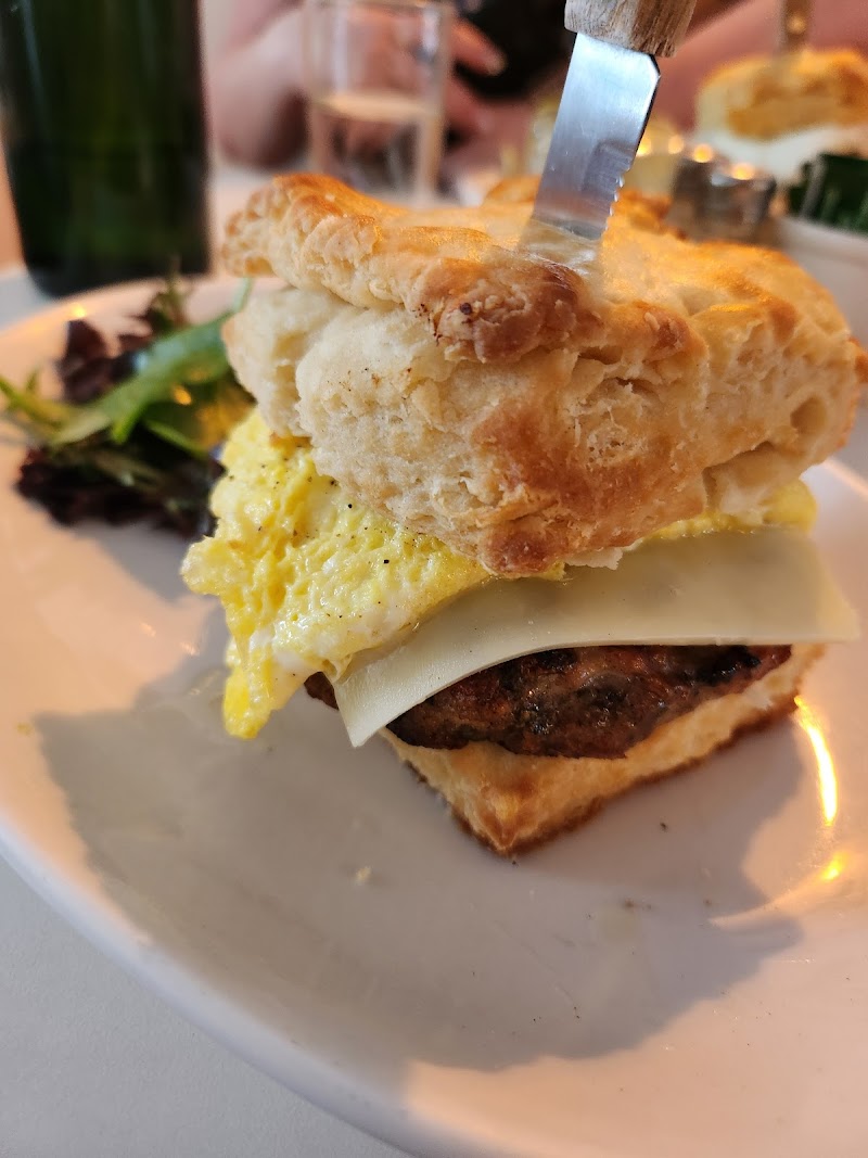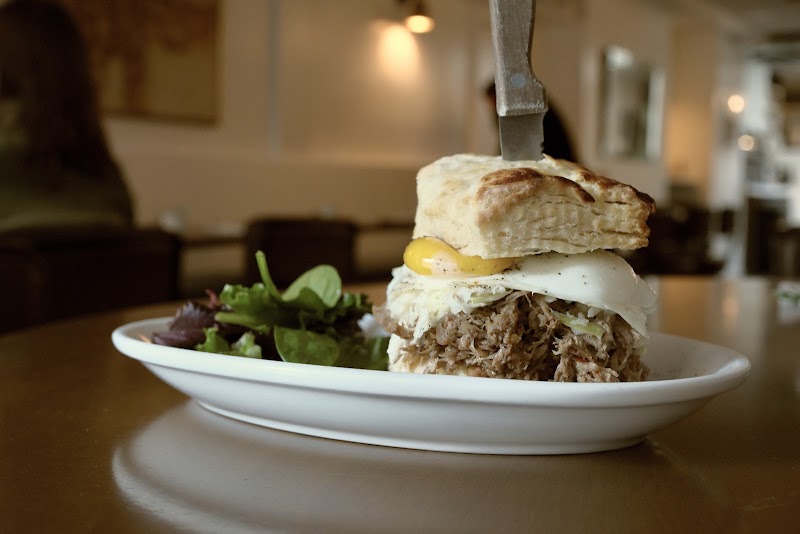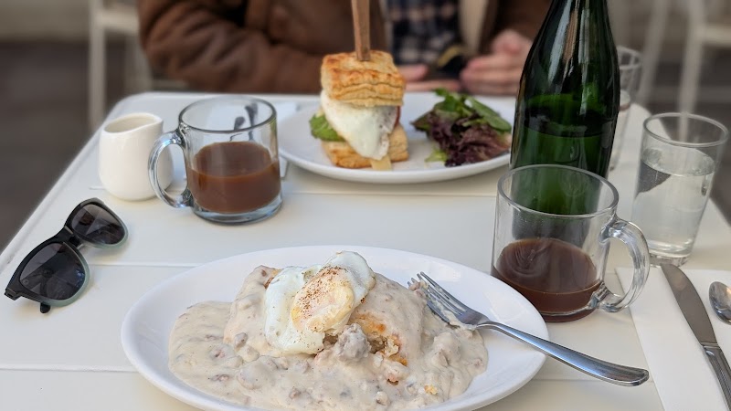 "Love the brunch here, a really unique spin on classic brunch food. The chocolate chip pancakes were fluffy in the middle with crispy edges and was so good! My friends got the chicken biscuit and vegan gravy - biscuits are TOP NOTCH. Also cute atmosphere with a chill outdoor seating!"