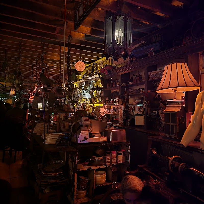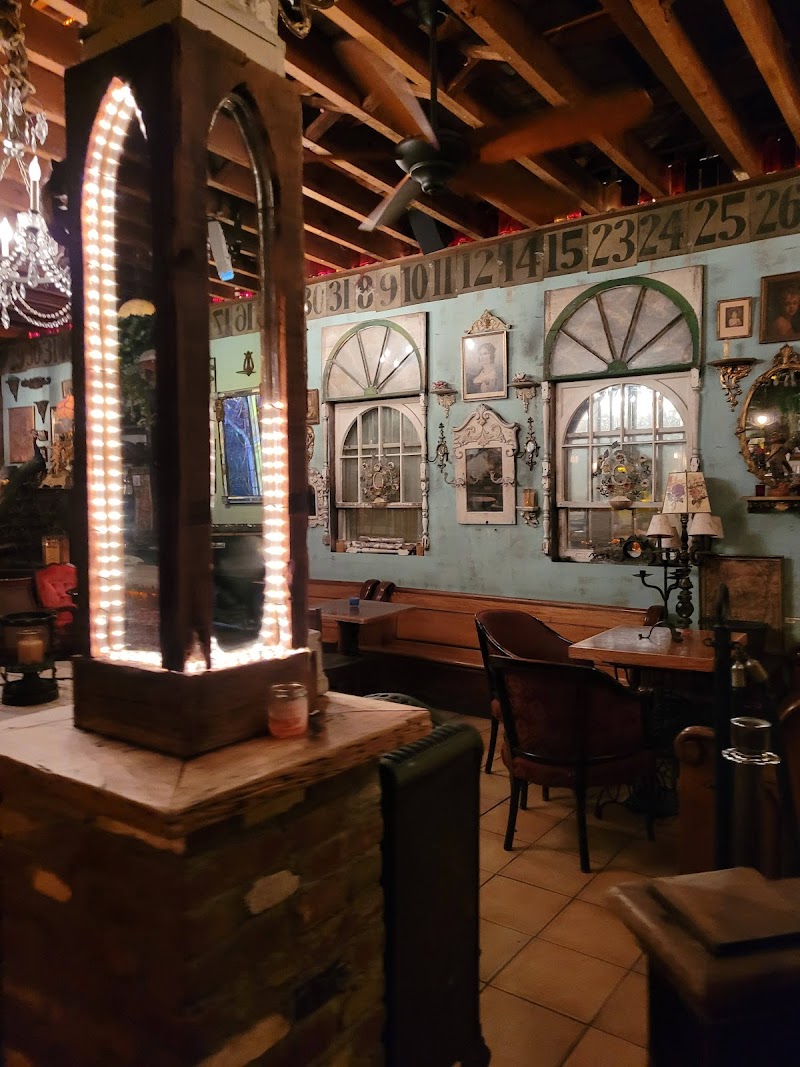 "They have Gypsy jazz at night. Cute decor, with a vintage, hodgepodge, spooky feel. Good drinks. I got the blood orange and my partner got a whiskey neat. They let you bring your own food. Smells good. Cash only but there’s an atm."
