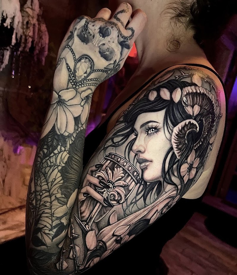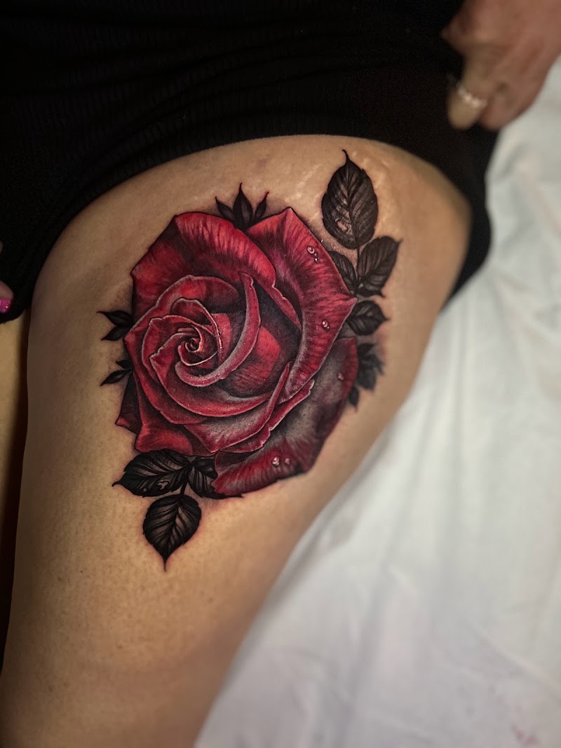 "Christian aka Chris is an excellent and talented tattoo artist. He really goes in detail with the original artwork of what you would like to get done, and enhances is 10x from what it looked like before. Most of the tattoo artists there are cool and chill and it's a pretty nice vibe there. Great artist and photo work of eccentric, dazzling and interesting paintings and portraits from symbolism to still work. I recommend getting your first tattoo here and they explain without pressure."