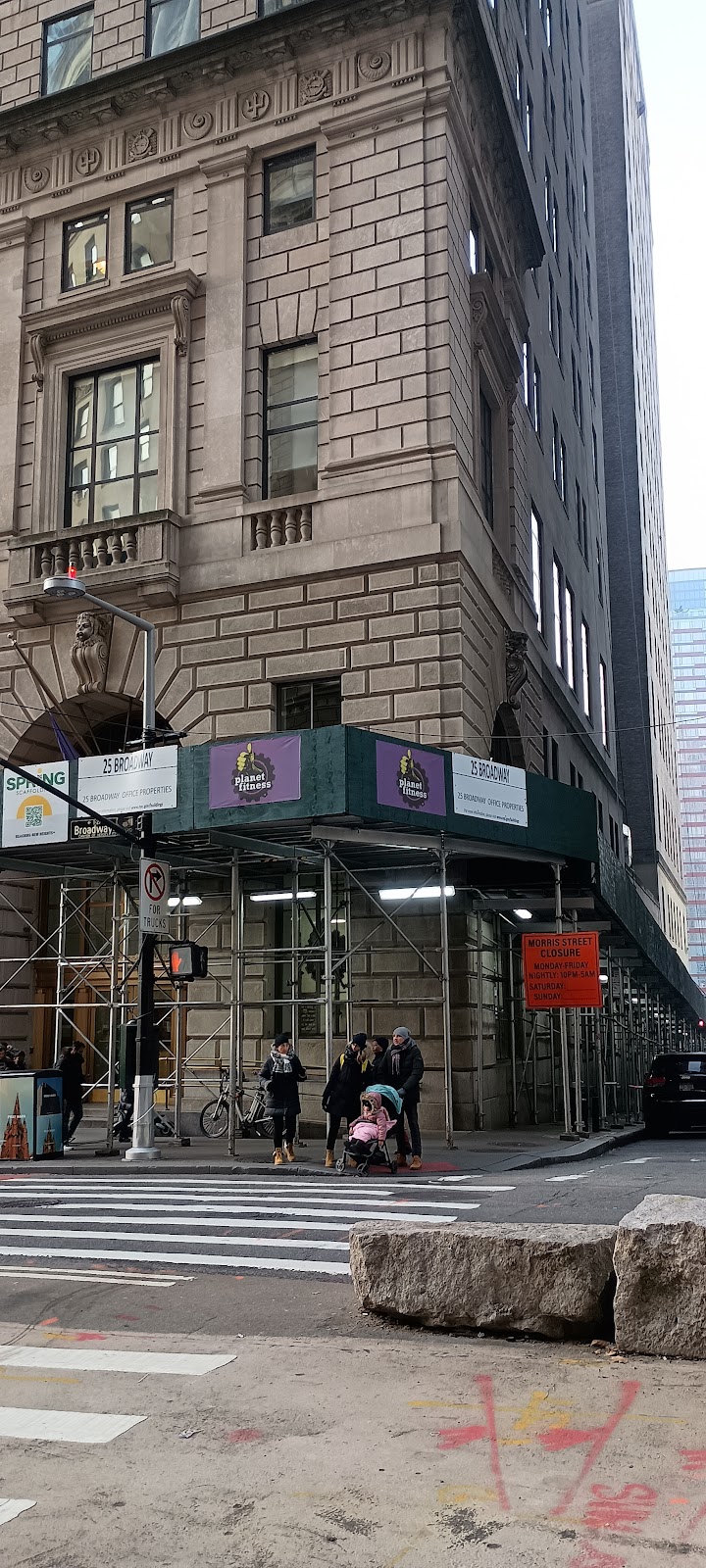 "This Planet Fitness is only about 25 feet away from the Charging Bull. The staff is very friendly. It’s interesting that the gym is on three floors. You enter on the top floor. The next floor down is the cardio floor and the bottom floor has the locker rooms and weights/machines. They have gotten creative with getting a lot of equipment into limited space. Equipment is updated and the facility is very clean."