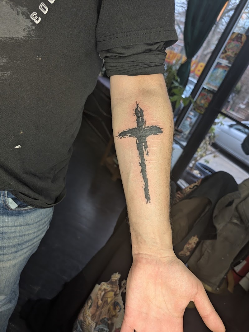 "Had my first two tattoos done here and they were fantastic! The first was a flash piece done by Jon Jon and it was great. The second one was a custom piece by Bailey (picture attached) as a memorial for one of my cats who passed away. I had the idea of the paw prints and some sort of leaves around it and Bailey was able to freehand my idea. He also added some color in and it made it pop even more. I got the tattoo on Saturday and just took the second skin off today, Thursday. The tattoo is healing well and looks great."
