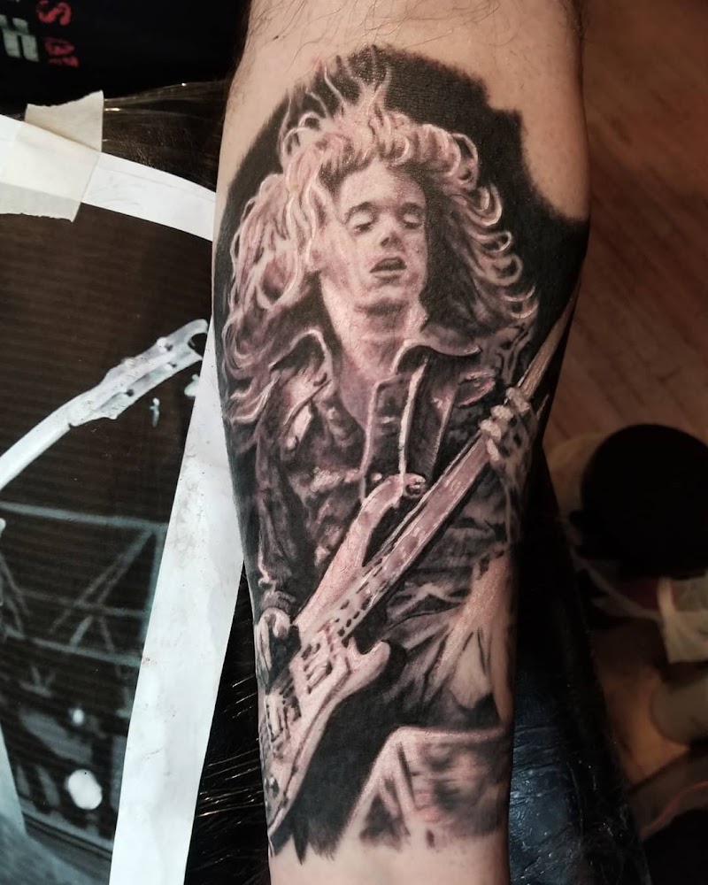 "Had an awesome experience here. Caroline was my artist, and she absolutely crushed it. I gave her full creative freedom on the design, and it did not disappoint. From start to finish, she was welcoming, professional, and clearly passionate about her craft. Cristian was there too, and both of them made the whole vibe feel laid-back and comfortable, exactly what you want when you’re getting tattooed. The piece turned out even better than I imagined clean lines, great detail, and healing up perfectly. Highly recommend this place if you’re looking for quality work from people who care. Support your local artists, they’ll surprise you in the best way."