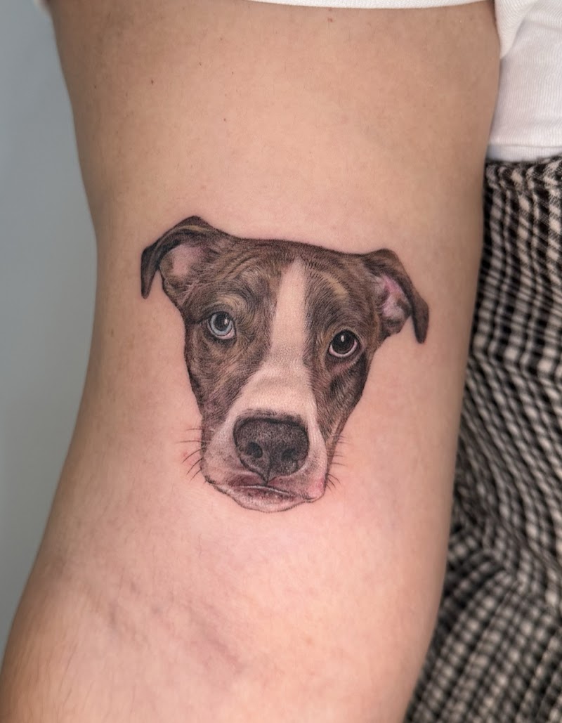 "I got a portrait of my dog tattooed by Hannah, and I absolutely loved it — I can’t stop looking at it! 🐾 The whole experience was amazing; the place is beautiful, cozy, and super clean. I felt really comfortable the entire time, and they even offered me water and snacks. Hannah is truly amazing! I’d definitely go back to get another tattoo there. ❤️"