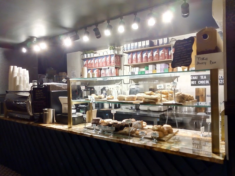 "A small coffee shop to grab a coffee and run. There are 6 bar stools, no tables to sit, well, this is a city coffee shop. There is a small selection of desserts, in principle, a good cafe, with pleasant service. I was lucky that there was a chair and I was able to while away the time before my appointment and drank honey bee coffee with oatmilk, it was too sweet for me and they added boiling water on request. Usually, especially in the morning, there are no seats here. Good coffee"