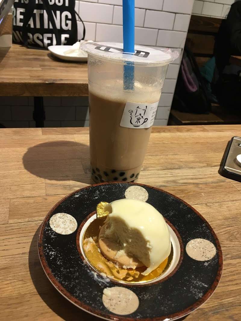 "Small place for tea (bubble tea or just straight tea) and desserts. Just two tables and not much standing room. I just got bubble tea but was really tempted by the dessert display. I had a lavender black milk tea with pearls. They had just run out of pearls and had started cooking a new batch, so I had to wait about 5 minutes for the pearls to be ready. I would have liked it if the tea was a little stronger, but it was good tea. I liked that the lavender black tea is actually made with a lavender black tea instead of a black tea with lavender syrup. For my taste the pearls also could’ve been a little softer, but they weren’t bad at all. It was a nice and simple, tea-forward bubble tea. The barista was really nice."