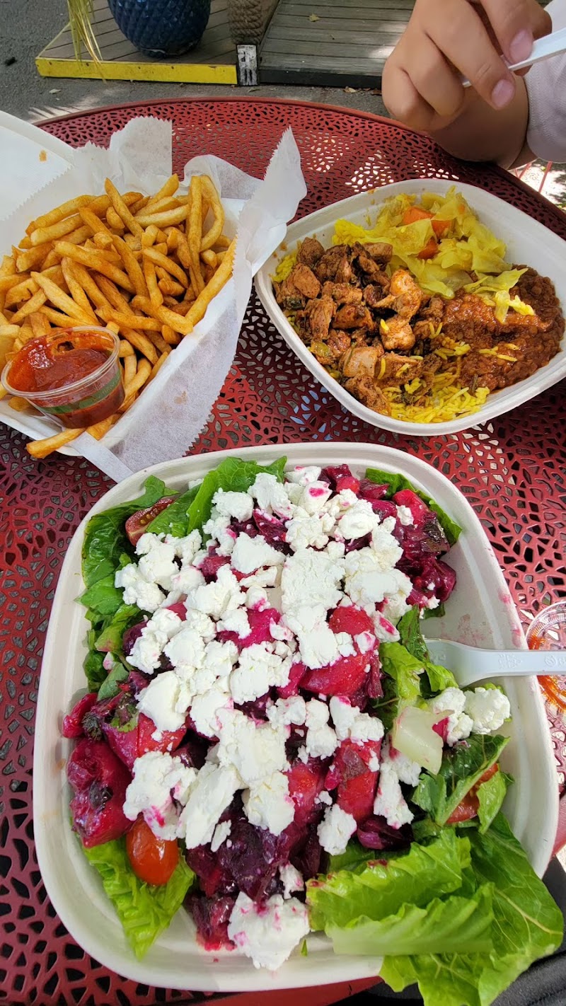 "My 1st time trying Ethiopian food and I am in love! The food portions is great! Flavorful and extremely yummy! I'm in love with the beet salad! The goat cheese is absolutely creamy and Divine! The French fries are hot and crispy! Well seasoned with a perfect hint of spice. The chicken rice bowls are seasoned well and the rice is cooked to perfection! You guys gotta try it! There are seats out front under shade and It's a perfect spot to grab a quick bite to eat and enjoy the nice weather! I will be back to try the other items on the menu."