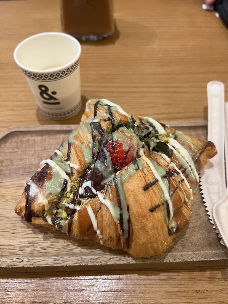 "Their hot pistachio latte with oat milk was AMAZING!! They have really cute pastries and croissants. Unfortunately not a single vegan food option. I am rating this place based purely on their coffee not the food. Cozy and cute atmosphere."