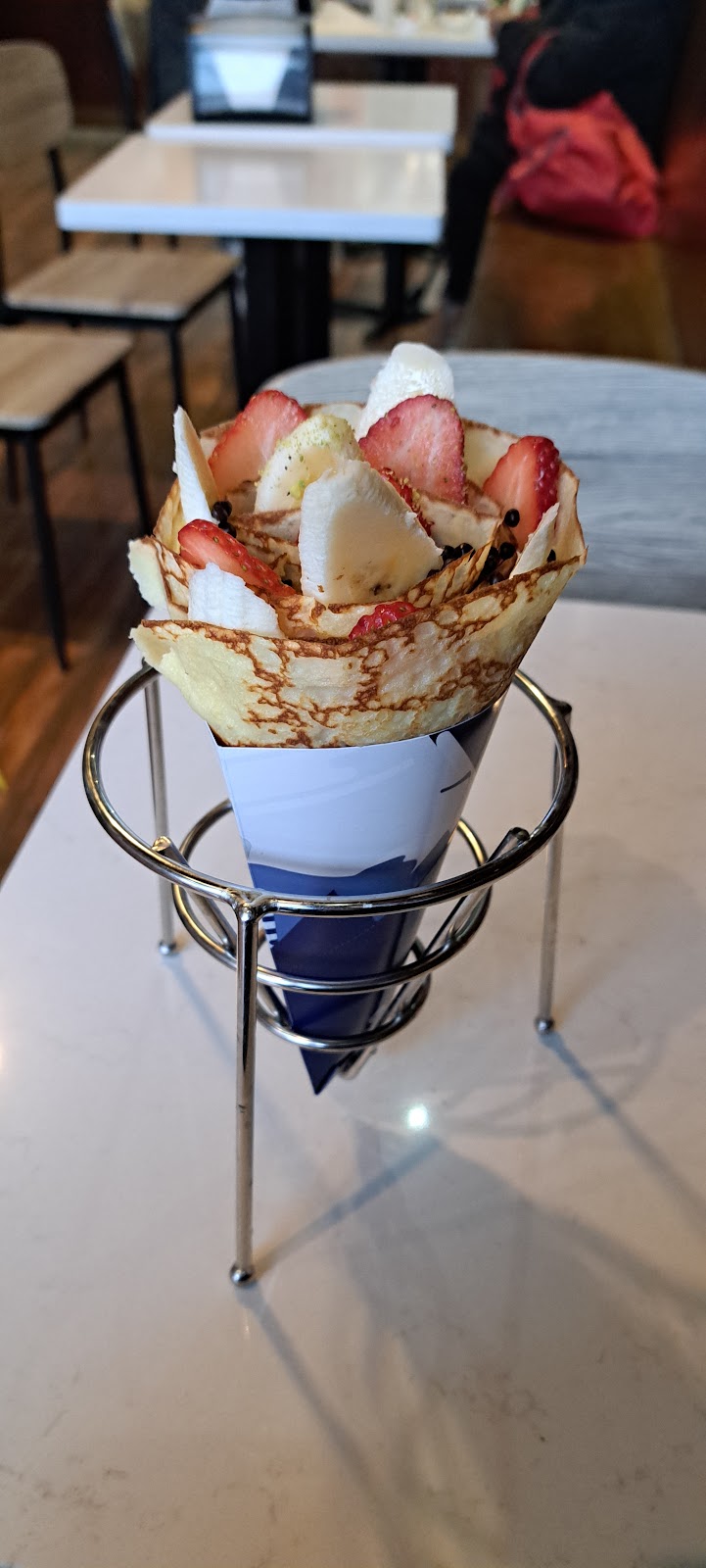 "I had the chocolate banana crepe, and it was absolutely delicious! The crepe was rich in ingredients, with the perfect balance of chocolate and fresh bananas. The sweetness level was spot on – not too sweet, just the right amount to satisfy your cravings. Every bite was indulgent without being overwhelming. Definitely one of the best crepes I’ve had! I’ll definitely be coming back to try their salty crepes as well!"