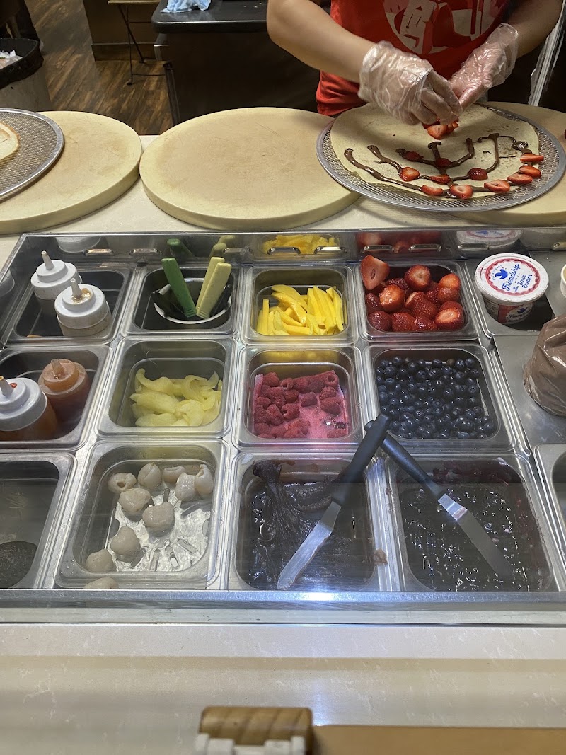 "The crepe was good as I got the creme brûlée with strawberries. I like that you can customize your crepe or pick a premade one. They also offer savory crepes so the menu is diverse in that way. I am giving 4 stars because I waited to be taken at the register and the cashier completely ignored me and kept doing what they were doing. I had to eventually just say after a minute or 2 “excuse me, may I order?”. The seating is also pretty tight which I normally would not mind if I was able to take it to go but eating and walking around with a crepe is not the easiest thing to do and can get messy. Overall, it was a decent experience and I would try again."