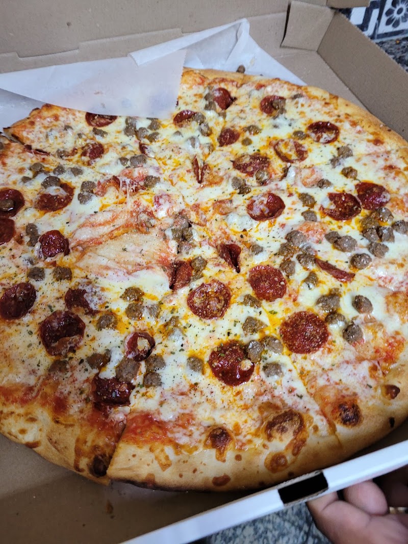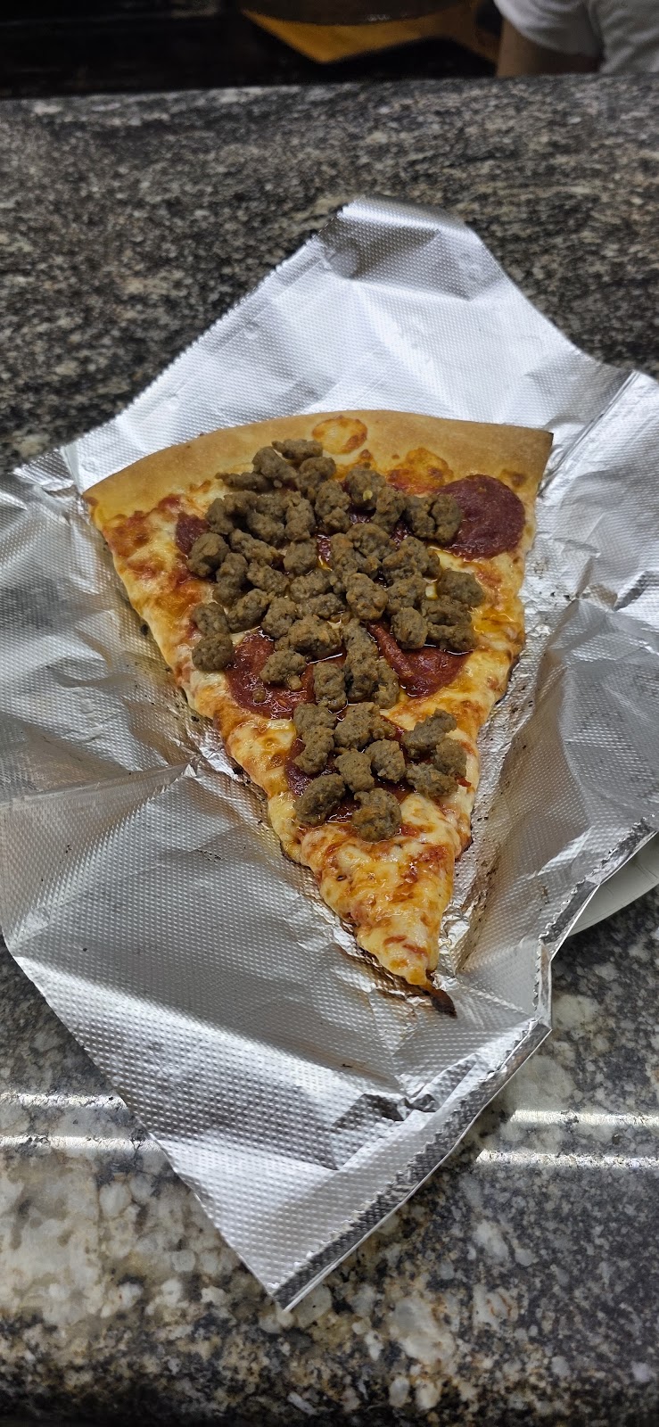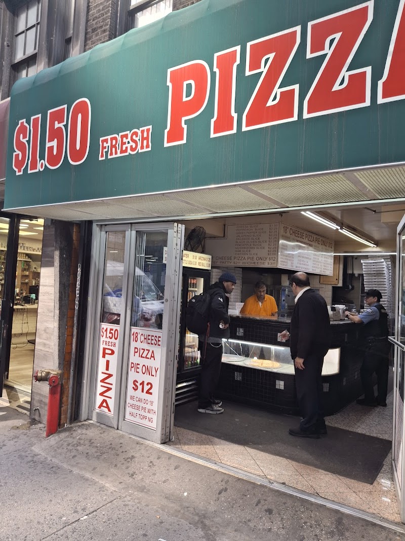 "Was short on time but big on hunger and this place really hit the spot. Got a slice of pizza for $3 and a can of soda for $1.25. They took 3 minutes to heat up my slice and it came out super got, great cheese pull from the plate. Very generous on the toppings (I got pepperoni and sausage). The crust was thin and crispy, just like it should be. I was outta there and back on my way in 5 minutes."