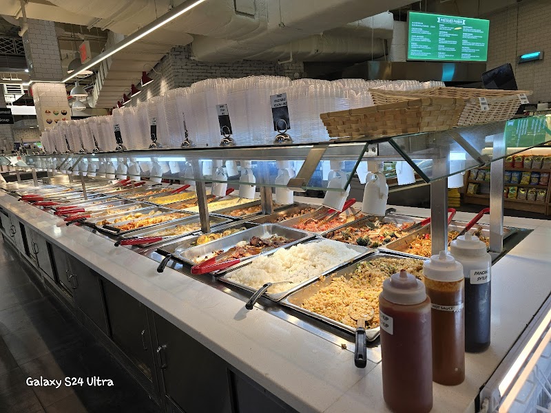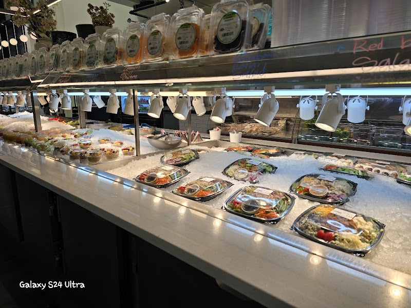"Came here a few times for vegetable lunch on office days. Good way to get a bunch of different food. It's clean. But pricey, currently $14.99/lb for hot food. Many tables and counter seating down flight of stairs, with gender neutral restrooms."