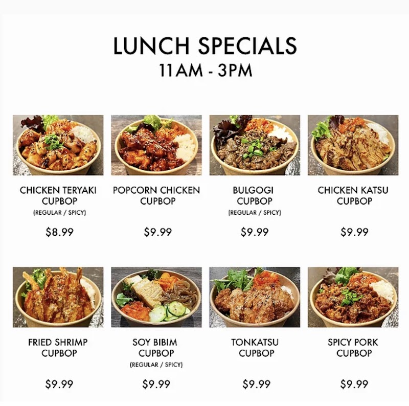 "food was pretty nice, got the popcorn chicken, chicken katsu, and bulgolgi cupbop lunch special. super crispy katsu and i loved the sauce on the popcorn chicken. the bulgolgi was a little on the dry side and the rice came with an extremely unnecessary amount of mayonnaise. it was overall alright, getting over the fact that the rice was so filling due to so much mayo. if there was half the amount they put on there i would give this place a 5."