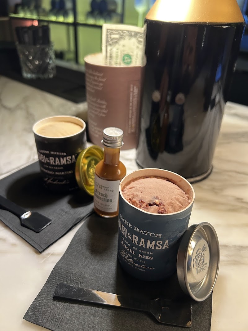 "Ice cream & alcohol what’s not to love. The bar is beautiful, the staff courteous & the ice cream delicious. I had a small bourbon crème brûlée at the bar & it was so good I immediately asked about takeout options & travel time. I was told they did have takeout & that the ice cream would be good for an hour in their zippered bag. (Two hours if they added dry ice) I completed my shopping in the area & returned to pick up a few more flavors. I can’t wait to try them. I think these would be perfect desserts for small dinner parties. Their hours are very convenient (noon till midnight - 7 days a week)."