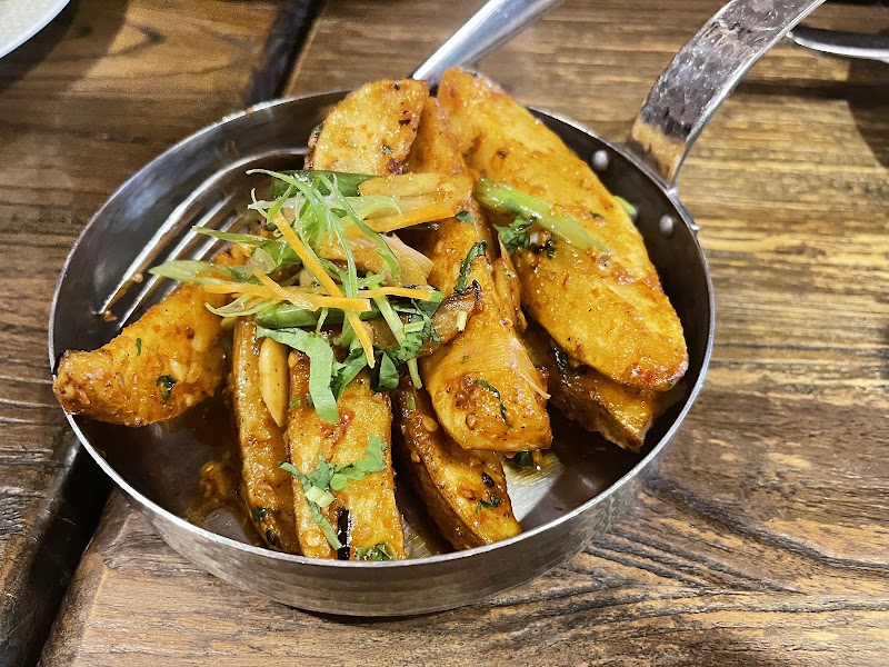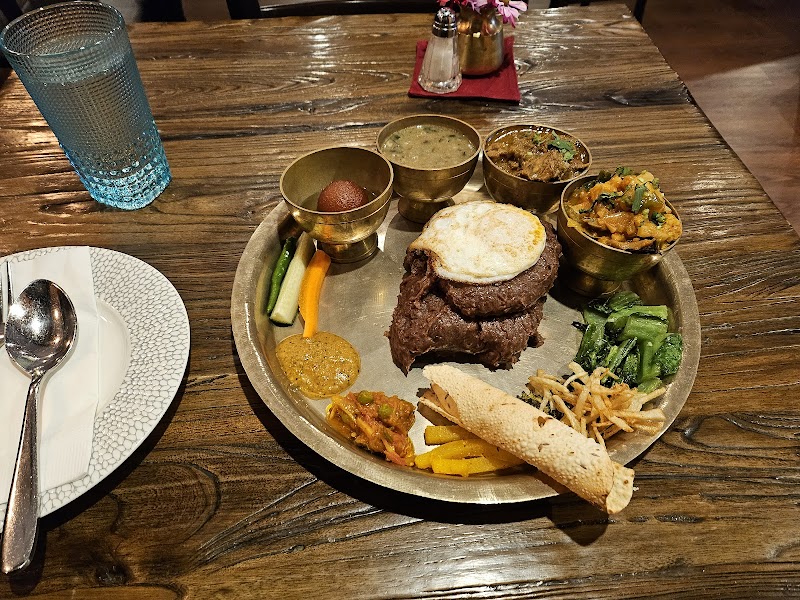 "They do not skimp on the spices here. Very flavorful dishes with heaping portions. They offered us an off menu beer choice, and asked for our spice tolerance (and since I could handle it, the server recommended a spicier option of one of my choices!). I recommend the signature items if you want smaller dishes with their signature spice blends, and the other side of the menu for big Nepalese-style classic dishes you might be more familiar with. Their momos are Excellent!! Always get a plate for the table if you visit!"