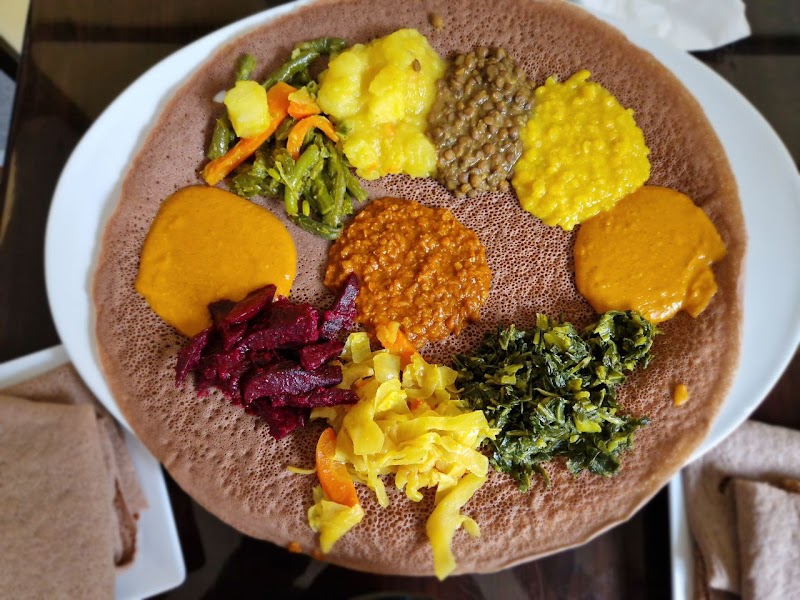 "What a lovely experience! The restaurant has such a cozy vibe, and the staff were incredibly welcoming from the moment we walked in. We were lucky to get a table — almost every one was reserved, which says a lot! The interior is warm and inviting, with little touches that let you learn more about Ethiopian culture. And the food… absolutely delicious! Every dish was full of rich flavors and clearly made with care. Can’t wait to come back!"