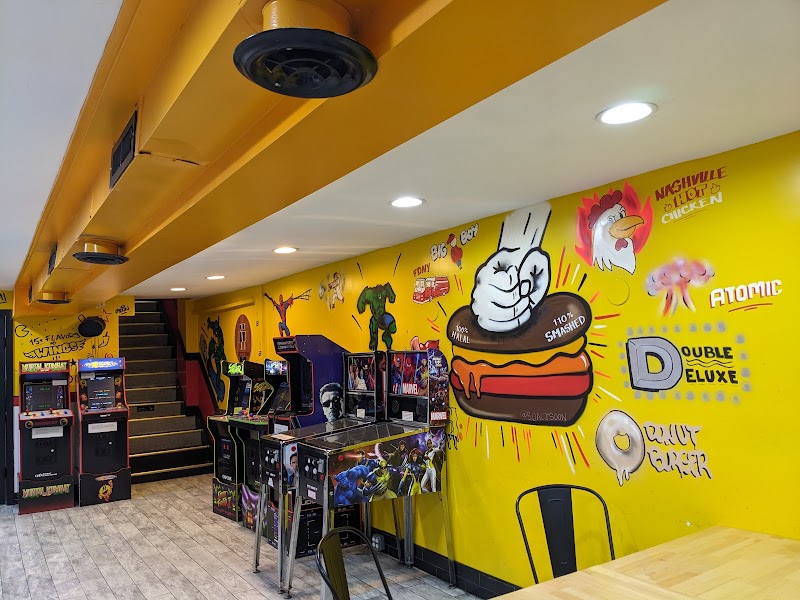 "Atmosphere was really nice, it has an 80s/90s vibe to it, the lady at the counter was really nice and helpful and recommended a good option for our baby who was with us. We ordered smashed cheeseburger meals (single and double) and some chicken strips. The burgers were really good, not too thin and not too heavy and it had a good amount of cheese and sauce. The experience overall was really good and this place is definitely recommended for anyone looking for a solid burger around bryant park. They also have some cool 90s arcade games like mortal combat and Ninja Turtles which definitely goes well with the overall theme."
