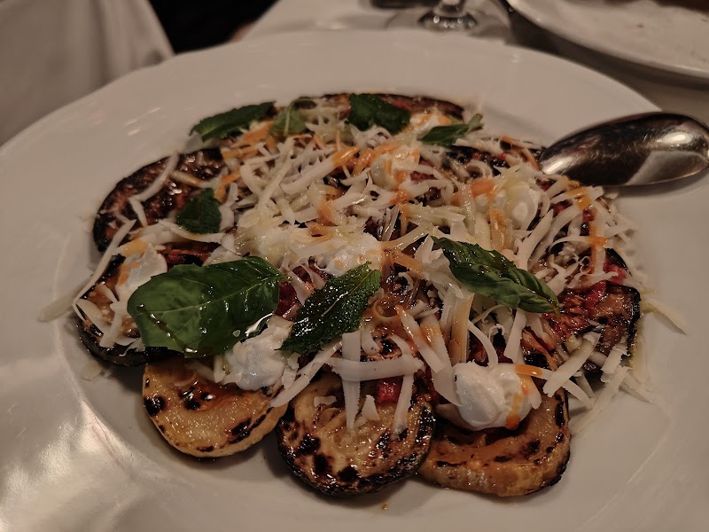 "We celebrated my birthday lunch at Carbone and overall had a very enjoyable experience. As soon as we sat down, they brought out some bread, fresh mozzarella, and salami, which were all delicious and a great way to start the meal. We tried the eggplant and zucchini scapece appetizer, and it was outstanding, light, flavorful, and clearly made with high-quality olive oil. For our main courses, we had the rigatoni vodka and the salmon. The pasta was rich and perfectly cooked, while the salmon was fresh and well prepared. The only downside was the long wait between the pasta and the salmon, which took so much time that we almost lost interest in having the second course. For dessert, we ordered the nutella tiramisu, which was unfortunately a miss. It was more like a cake than a traditional tiramisu and did not have the light, creamy texture we expected. The service was attentive, the atmosphere was great, and the food overall was delicious. It is a great spot for a special occasion."