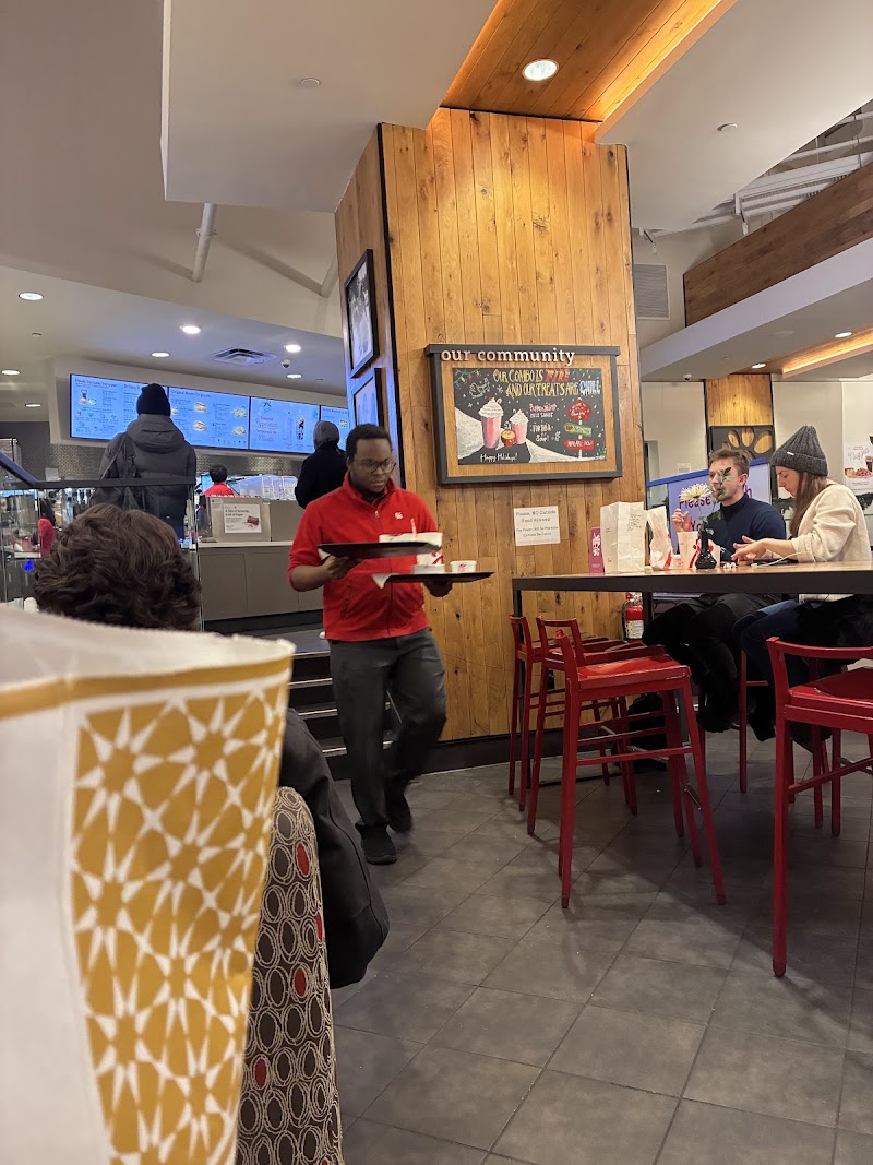 "Baby Chick-fil-A in Hell’s Kitchen delivers better service than some five-star restaurants in NYC—no exaggeration. I walked in just to grab some nuggets and ended up staying for a full meal, completely won over by the experience. The space was spotless, a friendly greeter welcomed guests while keeping tables tidy, and fresh flowers adorned each table. The ambience? Surprisingly inviting. The efficiency? Impeccable. And let’s talk about their marketing—it’s working! The team deserves a raise because they turned a quick stop into a full-on dining experience. They even offer a sit-down option where you can scan a QR code, order from your table, and have your food brought to you. Prefer the traditional route? Order at the counter, grab a table marker, and they’ll bring your food right over. It’s giving cute lunch date for teens, nice outing for colleagues. It’s giving European fast food experience right here in the U.S. Who said fast food couldn’t feel upscale? I’ll definitely be back."