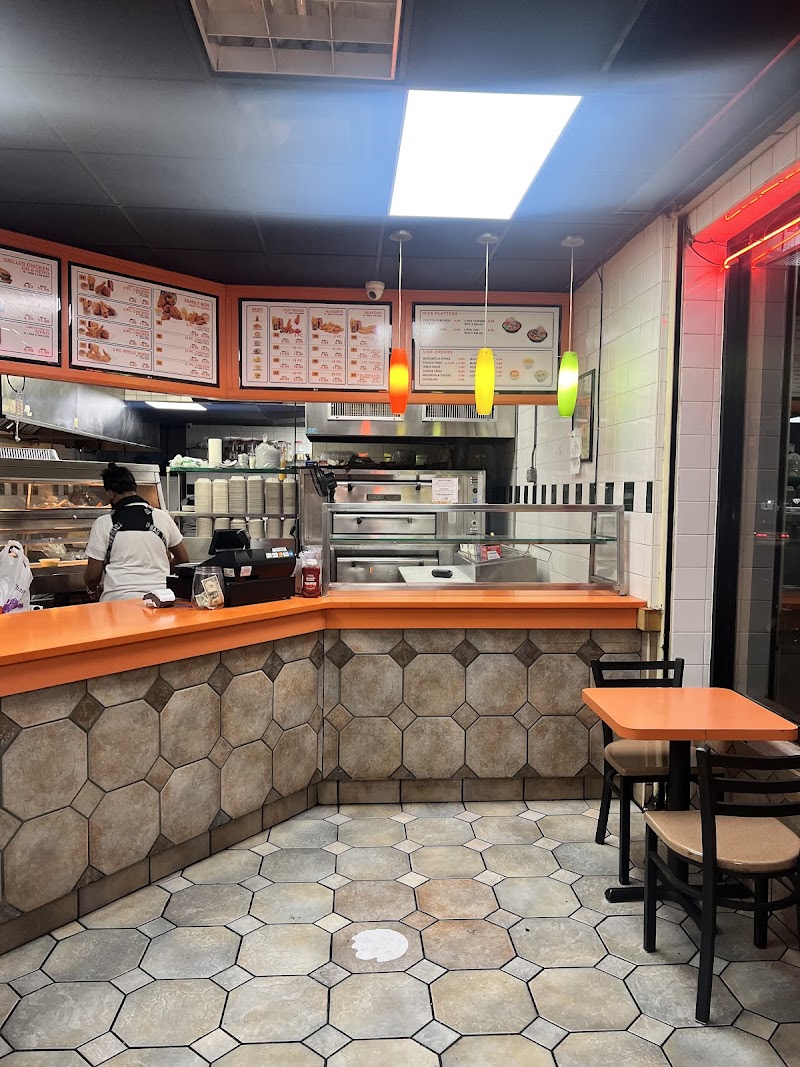 "I got a lamb gyro platter and bae got the grilled chicken combo. Service was good and friendly. But the white sauce isn't from like a squirt bottle that the carts have. They're pre packaged. He only gave me two at first but a girl like me needs atleast 4 😂. We came here on a whim and i don't regret it. The food was really good. It was empty in there but they have a good amount of seating. Fast service. Also very decently priced. Everything came out to $23 and some change. I'd come back here to try the spicy chicken sandwich and I'd come back to get the lamb gyro again."