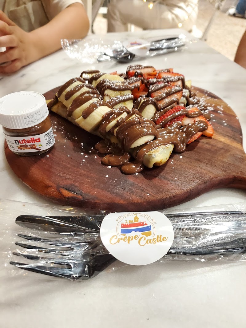 "Crepe Castle, You guys have done a wonderful job in all aspects. I am extremely particular about my food and sweets. Especially when it comes to crepes, personally I do not like them! I was passing to go to Moe’s right across the street until i noticed the little fire ring, so my friend and i parked the car and noticed the little Igloo seating area next to it! Enough to attract us to the door. When we entered we were generously greeted by the two wonderful employee Ayah and Dala. We were welcomed with smiles and phenomenal recommendations. It was my friends and i first time and we asked for their best drinks and they were ecstatic to assist us with everything we needed. He ordered the Vietnamese iced coffee and i personally dont know the name of the drink as one of the girls chose it. They were happy to help and extremely welcoming. They created a great environment. They directed us to the little Igloo seating which was nicely decorated and had a heater to keep us warm. The girls then served us the drinks and waited to see if we were happy with them. We took a sip out of both and with all honesty they had a unique and delicious flavors. I have been to many cafè in my life and drank plenty of coffee a-lot of places. Something always lacks but crepe castle was nailing it on the head in every way. Welcoming greeting, great staff, seated us, very nice cozy vibes, coffee was delicious! Even when the owners wife came to drop off some things for the girls she had passed by to greet us! Everyone was very welcoming. Him and i enjoyed our coffee chatted a little and we decided to visit again today! Which was at-least a week from last visit, well enough the girls recognized us said their hellos and greeted us well! We ordered three drinks 2 hot chocolates and a chai tea!! Their recommendation as well and they didn’t miss again. We get our drinks and they taste very good. Their hot chocolate was not like every other hot chocolate very generic…It had its different flavor! Tasty! Not only that but they had also served us two crepes on the house as complementary. I was truly impressed by their service and employee and how they treat their customers. i am in awe very well put together in all sense. The crepes which i personally never order outside were PHENOMENAL! Very light and easy on the stomach. One crepe was the sunshine crepe i believe which contained strawberries, mango and kiwi was DELICIOUS i hate crepes and fruits in my sweets but this one was a banger! I’d definitely order it again. The fruits were ripe and had their different flavors. We also had a crepe that has cheesecake on it which was also good a little heavier side. Over all the place is a 5/5 and i rarely give those. Everything was literally beyond exceptional. The staff, sweets, drinks as well as the owners did above and beyond any cafe I’ve been to. It is a great addition to this plaza! I highly recommend the place to anyone go and enjoy a nice cup of coffee or crepe there. You will not be disappointed i promise you that. Bon appetite! Well done crepe castle well done!"
