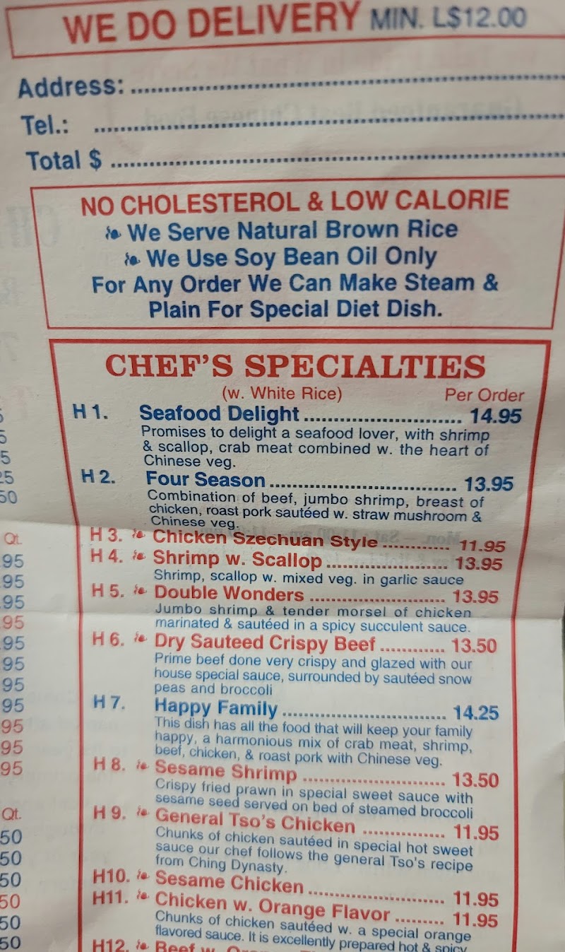 "Fresh Chinese food with plenty of vegetables. Flavors are hit or miss. We loved the House Special Buddha's Delight! I added some soy sauce but it was good on it's own. The other tofu dishes were balanced -- not especially flavorful but if you spice them up with seasonings, they are better. I kind of like that they don't put a lot of salty or msg laden seasonings on the food. That way it's healthier when it arrives and you can add what you want."
