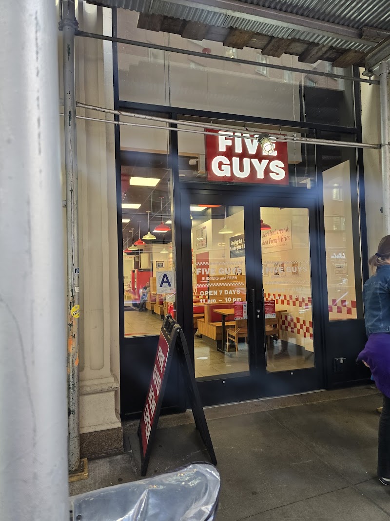 "Five Guys near Wall Street serves really great burgers, and they filled our bag with a huge amount of fries — and they were delicious. The place is well maintained, clean, and the bathrooms were surprisingly spotless. A solid stop if you’re in the area."