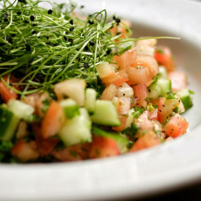 "The food was heaven. We got Israeli salad, labneh, and lamb with hummus. The pita saag was light and airy and the perfect bread to accompany everything."