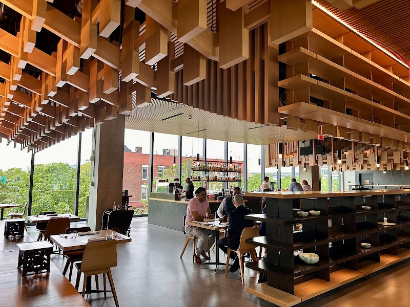 "I have travelled the world extensively over 40 years. I ate at all restaurants ranging from pop & mom’s to Michelin three stars. This is my honest review of the Genesis House in meatpacking district in New York, NY, USA. Genesis House is truly a hidden gem — located on the second floor of the Genesis car dealership, which you access through the showroom, either by stairs or elevator. The restaurant offers both a tasting and an à la carte menu; we went for the latter. We started with the beef tartare with egg yolk, beautifully seasoned with chili and tomato. It was spicy, creamy, and perfectly balanced — an absolute success. The lobster rice followed, served with a salmon roll and a generous piece of lobster. Presented in a striking, almost artistic way, it revealed even more depth of flavor once mixed together. The short rib with serrano pesto and broccolini was likely the highlight of the evening — tender, flavorful, and simply outstanding. For dessert, we tried the banana puff pastry with candied banana and banana milk ice cream — a delicious explosion of flavor. We also enjoyed a soothing ginger and citrus infusion to finish the meal. Every dish was executed with precision and creativity — worthy, in my opinion, of a Michelin star. The interior design is spectacular — rich wood tones, refined architecture, and even a library seating area where guests remove their shoes and dine close to the floor in the traditional Korean way. The kitchen is semi-open, and the staff are warm, attentive, and professional. Considering the exceptional quality, the pricing is very reasonable. Some tables offer a lovely view over the Hudson River, just steps away from Little Island. Genesis House instantly became one of my new favorite restaurants in New York."