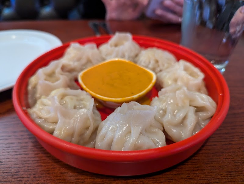 "I got the chicken momo with gravy to go. The dumplings were delicious and packed with meat. The stuffing was dense and flavorful. I could taste the hint of ginger. The 8 dumplings were smothered in the gravy sauce. The sauce was a bit spicy and sour. It was delicious and perfect for a cold day. Overall, it was a good meal and I’d like to come back again and try different dishes. By the way, the server was very helpful and friendly."