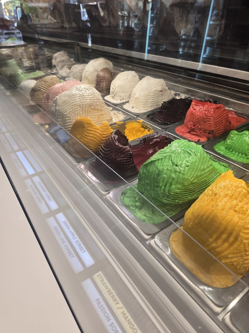 "Decent ice cream with 60+ flavors (including 20+ dairy free/sorbets), ample seating, large portions with low prices (3 scoops for $6) and a large collection of muffins, snacks/appetizers and sandwiches. You order at a Kiosk and thus you cannot sample any of the flavors. It is Kosher and kid friendly. While there was a great lot to choose from including flavors like orange vanilla, 8 different types of chocolate etc, they quality reminded me of something like Turkey Hill/Breyer and not one of a premium ice cream shop. They do use actual fruit in a few of their ice creams but not all of them."
