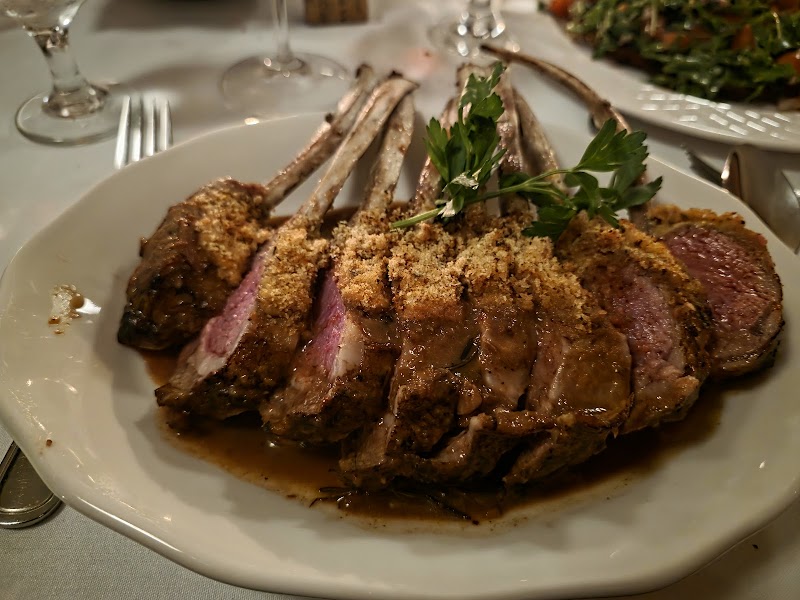 "From the street the entrance is a bit obscure — you can barely see inside or get a sense of the atmosphere. Once you step in, a friendly lady (from Colombia) takes your coat, but after that you’re left to figure out what to do next. After standing there for a few minutes, I asked her where to check in, and she said to wait for the maître d’. While waiting, I watched the scene unfold: a very full restaurant with lots of busy waiters, all seemingly speaking Italian. It was actually fun to observe the lively, slightly chaotic atmosphere — very “Italian New York.” The guests were predominantly men, including two groups of around eight. When the maître d’ finally came over, he asked if I had a reservation. I said yes, but he couldn’t find it and gave off an air that he might not be able to seat us. He asked what time we had booked, and when I answered “a few hours ago,” he made it seem as if that was too last-minute. At that point we didn’t feel very welcome and even suggested coming back another day. But after searching by phone number, he found the reservation and ended up seating us, handing us over to a friendly waiter from Ecuador. We were quickly served some bread varieties and tasty small Italian bites. We asked the waiter for help with the wine list, but to be honest, he didn’t seem very familiar with it — disappointing as the list consists mostly of quite pricey Italian wines. We chose a mid-priced one at around $130. The nice waiter skillfully recited the specials (or the entire menu, I’m not sure), and I ordered the scallops wrapped in bacon and the rack of lamb. Both dishes were good. The place was packed and noisy, but that actually fit the New York/Italian vibe — more Little Italy than Greenwich Village. Overall, it’s a unique restaurant with lively energy, but $440 (ex tip) for two people for two courses each feels too expensive for the experience. Hence the 3-star rating."
