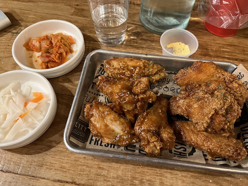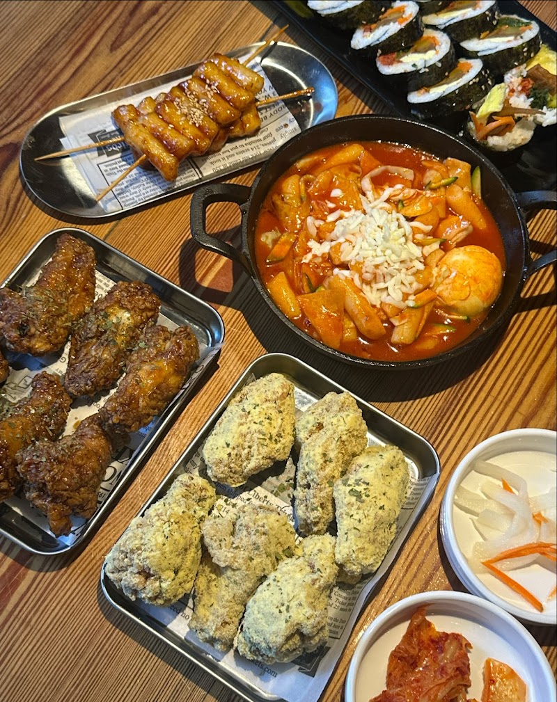 "Don't get the ddukbokgi. It's the instant pack that you would make yourself. I was actually really disappointed. Kimbap was okay, but dry and again overpriced. I don't mind paying a lot if they actually tasted normal. I get it, we're in the city so I expect the pricing to reflect that compared to the suburbs. Chicken wings were probably their best items which makes sense because that's what they are known for. BUT beware if you are not familiar with Korean wing flavors. I liked the powdered cheese flavor. It's sweet and fun, BUT my husband hated it and barely wanted to finish it. Spicy soy garlic was delish. I have pictures added because the food looked good, but just disappointing. The vibes and service were great and the interior is unique/fun."