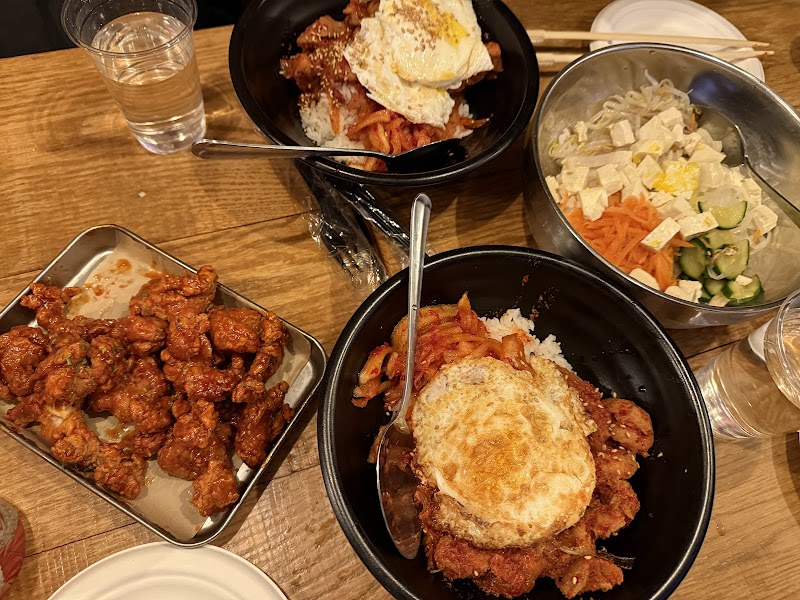 "I went to this casual Korean spot a while ago for dinner after going to Central Park nearby. They were pretty packed inside, but the woman was friendly, and I got a seat relatively quickly. I wasn't particularly in the mood for anything fried, so I went for their Spicy Pork Over Rice/Jeyuk-depbap/제육덮밥, which was $14.95. The pork was pretty tasty, with a bit of char, though the chili paste/gochujang was slightly milder than at some other spots. It was still a pleasant amount of heat, and it definitely was tender. The dish also came with a fried egg on top, which was a bit overdone for my liking. I don't mind the edges being crispy, but I want some yolk to drip. There was also some pickled cucumber with a bit of crunch that was pretty tasty, along with the rice, of course. The dish was pretty tasty, a good step above the closest casual Korean place to me, and worth the price. I'd go back here to try what they're more known for, which is their wings, another day. I'd recommend the place if you're in the area and looking for a quick and relatively cheap Korean meal."