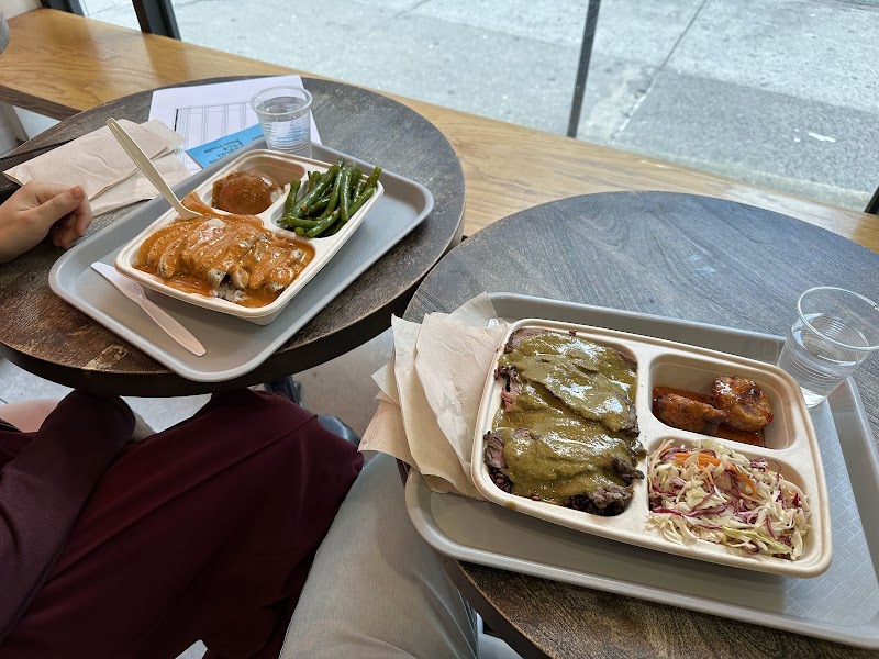 "Have eaten here over a dozen times but all take out. The food is delicious, allergen friendly and tastes clean n fresh. The coriander steak and salmon is 🔥 chicken is meh. The wild berry rice is what I always order and you should too. Trust me, skip the white rice if ordering take out. The mushrooms are incredible, sweet potatoes and kale salad are awesome, mashed potatoes is aight. As for the sauces, I prefer the 🥵 Kati signature and it is absolutely 🔥. The milder green curry is good as well. If you are in mood for clean Thai food, this is the place to go."