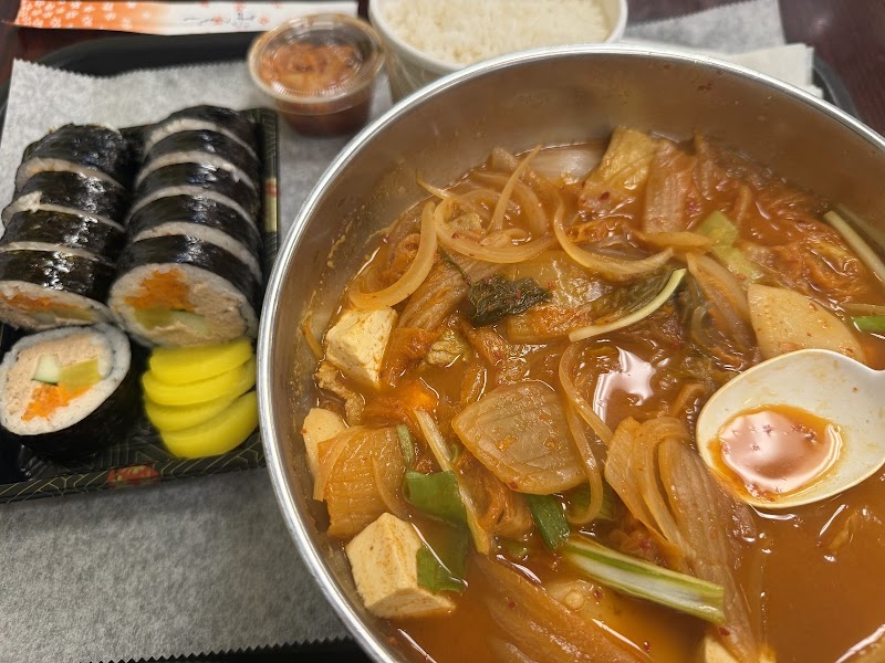 "Food tastes like a meal from your grandma or homey vibes if I had to explain it. It's a very casual spot. The shop is located inside a bunch of other stalls. There's very limited seating, so take out is ideal if you're close by. Theres no bathrooms here either. The kimbap and soups are SO fantastic. I crave it. I felt like the portion for the squid was very little, but the flavor was so good. Duk bok ki was ok - I wouldn't say it's the best, but the omlete rice, kimbap, and yuk gae Jang was just so good. Soups are in bowls bigger than your head, and it comes with a side of rice as well. It's definitely a hole in the wall, and the owner running is very kind."