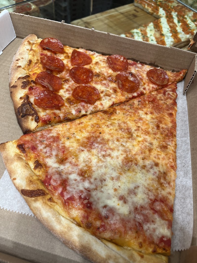 "First time trying NY pizza and I didn’t regret my choice! Their slices are so tasty and huge! I took the ricotta one… perfect! The guy who served me was so nice with me. Kinda small inside but other than that, nothing to complain about."