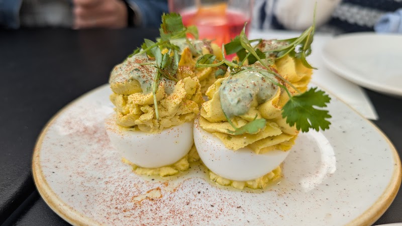"just … wow. our expectations were high after just having dined (and enjoyed!) next door at saint julivert recently. they were met and exceeded! we were in on a thursday, on the later end for la vara so even though we were only two we were able to take a booth. started with delicious cocktails and ordered the anchovies, chicories salad with persimmon, blue cheese and the most interesting coffee-infused vinaigrette, and had the tosta tomaca which was so good we ordered a second! there was a special cogote—roasted kanpachi fish head with sofrito butter that was so tasty we cleaned it to the bone, and the cochinillo with tximitxurri was so succulent and flavorful and the crispy skin just takes it over the top. dessert for us was basque cheesecake and a mini of the chocolate flan that we were gifted because we just couldn’t decide and there was a birthday involved…both had a bit of salt that did exactly what it was meant to and both were incredible. Sari, our server was delightful and Rob the GM was the perfect host! i’d love to visit with a bit of a group to be able to sample more of the menu in one sitting. either way, we’ll be back … so many other dishes to try."