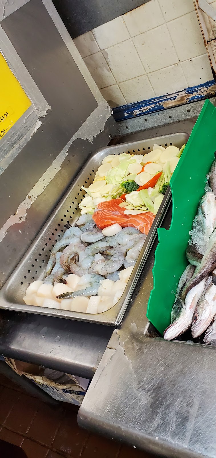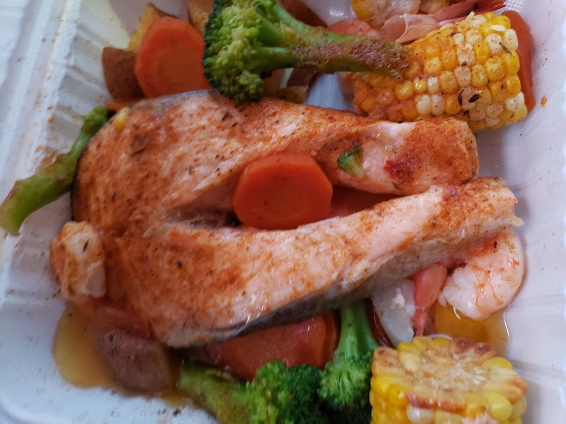 "Fresh seafood and fast, friendly service. You can buy seafood and portions of veggies and they will steam them for free. You can also get a prepackaged salmon, shrimp and veggie platter steamed for $13- $16, depending on whether you get salmon steak or salmon fillet."