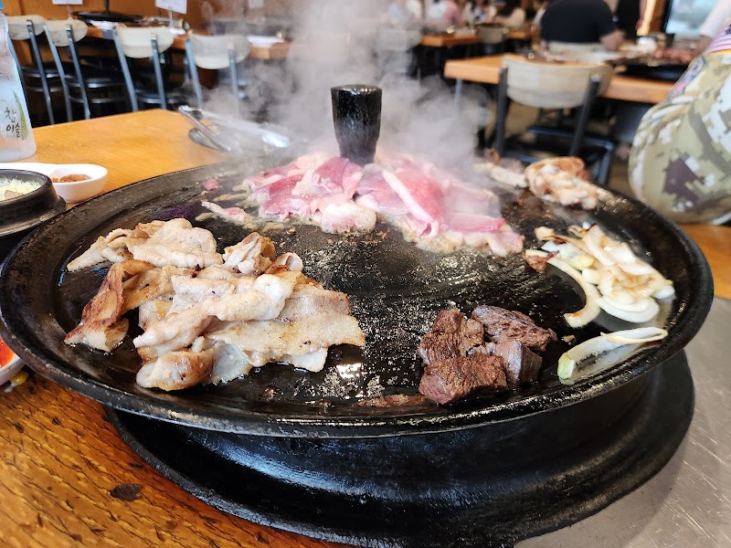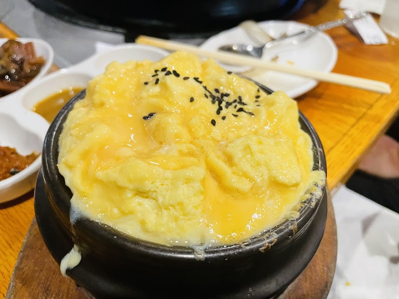 "Majority of all the meats were pretty salty but very tasty!! The best meats were the pork jowl, short ribs & beef belly. The thin-cut pork belly was flavorless & tasted rubbery after cooking!! Steamed egg with cheese & steamed egg with mushrooms were good but salty! Cheese with corn was good but small portion!! Service was pretty good but my waitress kept forgetting to bring stuff that was requested for us. Love the ambiance, TV's in between each table with great, nice music selection!! However, even though the AC was on, we were all sweating & eating!! At least we get a free sauna feel!! Woo Hoo!!"