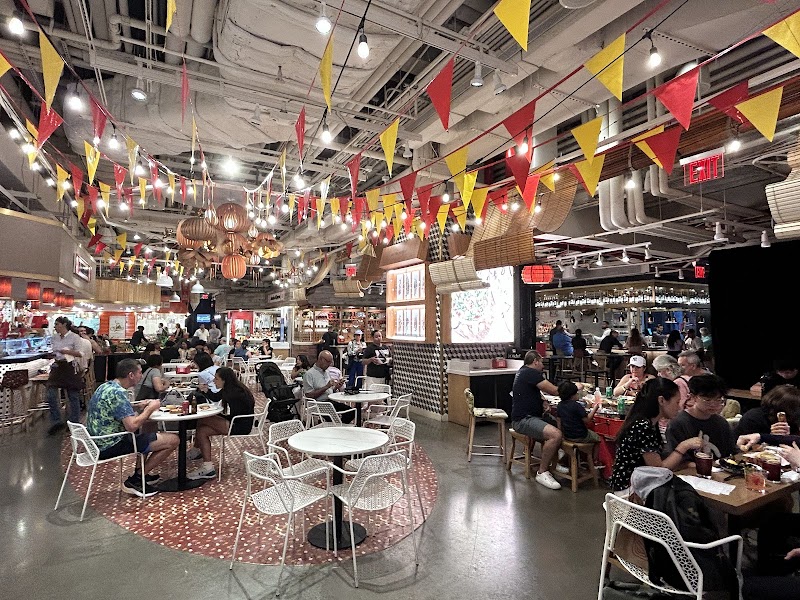 "A lively and vibrant food hall serving up Spanish themed food and bev. Liquid olives, charcuterie and bev were the highlight for us. Personally am not big on shellfish so can't comment on that other than to say they had a wide selection and it was displayed nicely and looked fresh. I think it's odd and unfortunate that they didn't have Ham Croquetas (only chicken). The paella was decent, didn't blow me away but was not bad at all. Texture was on point and flavor was good."